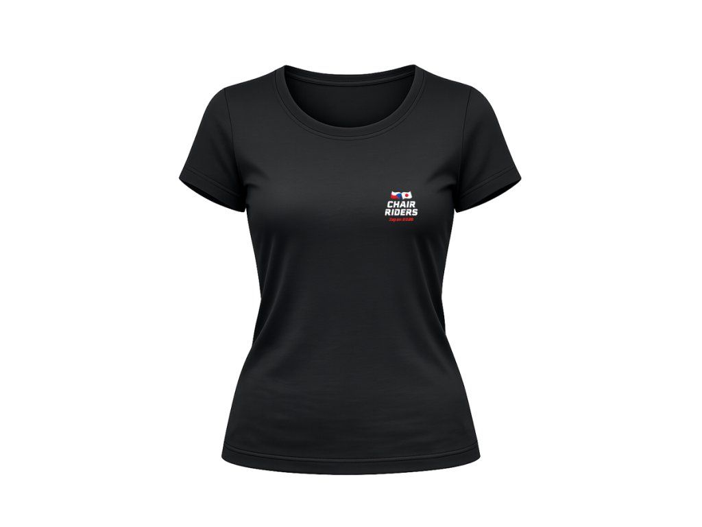 Kvalitní a stylové dámské černé tričko s potiskem CHAIR RIDERS – Japan - vlaječky