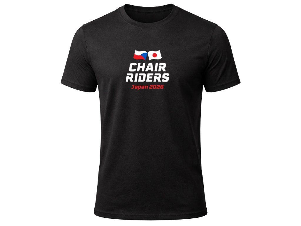Kvalitní a stylové pánské černé tričko s potiskem CHAIR RIDERS – Japan - vlaječky